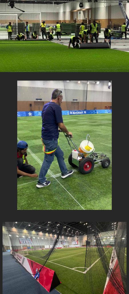 Our work included the preparation and inspection of the field, ensuring the highest quality and compliance with official regulations. This experience further strengthened our expertise in the industry, reaffirming our commitment to delivering high-level solutions for international futsal competitions.