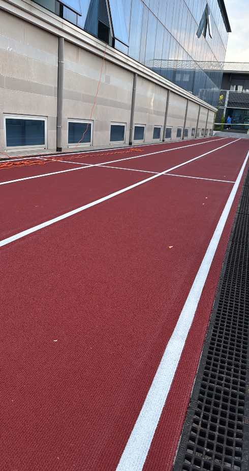 At the Diadora headquarters, we have built a straight section with three lanes of an athletics track, specifically designed for testing prototypes of new running shoes.